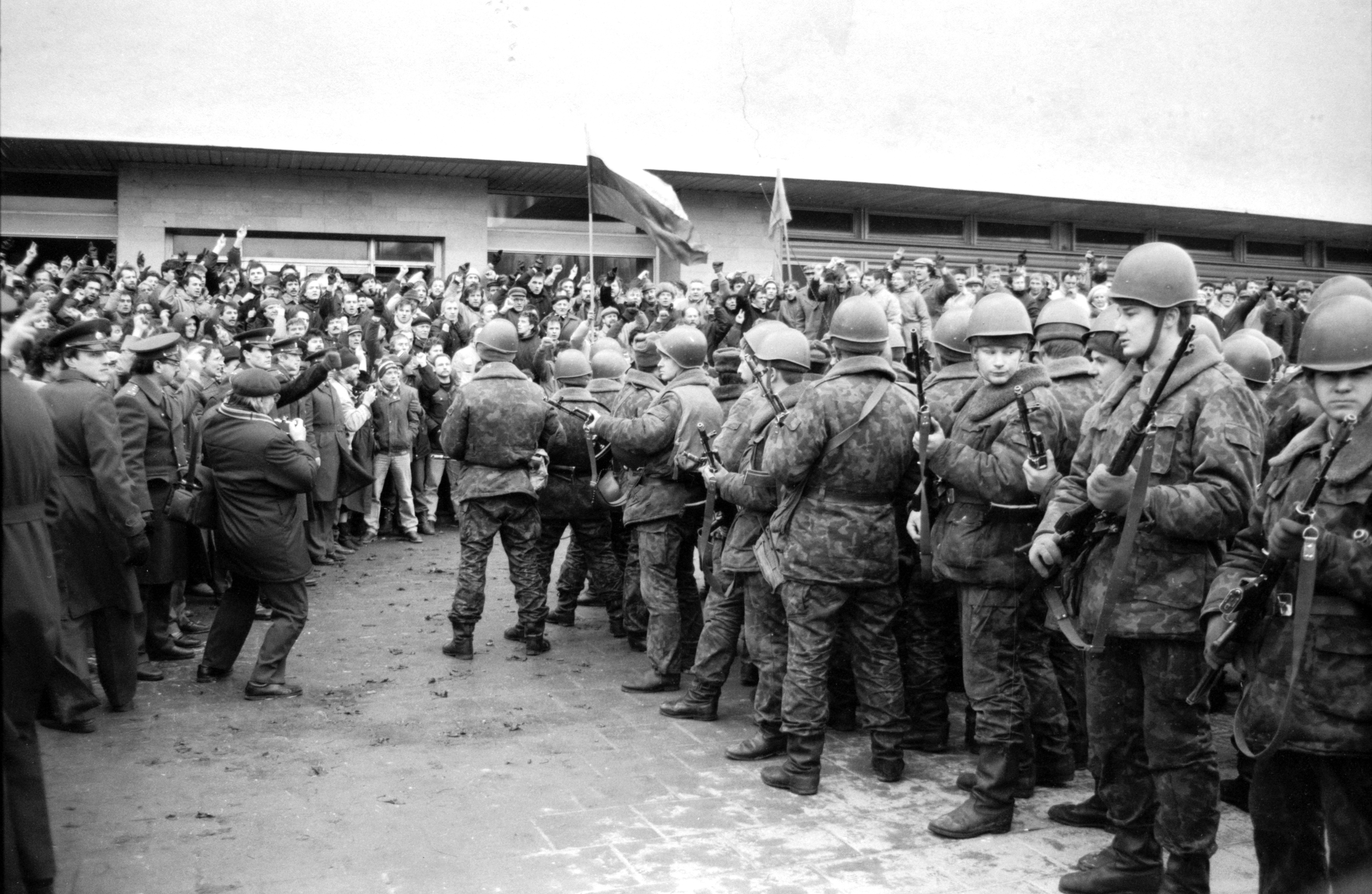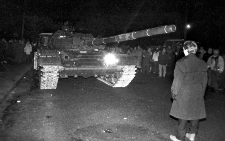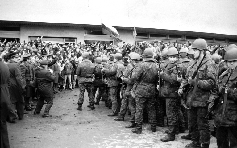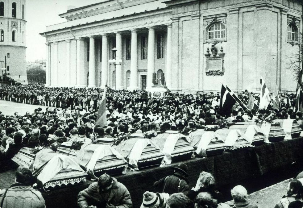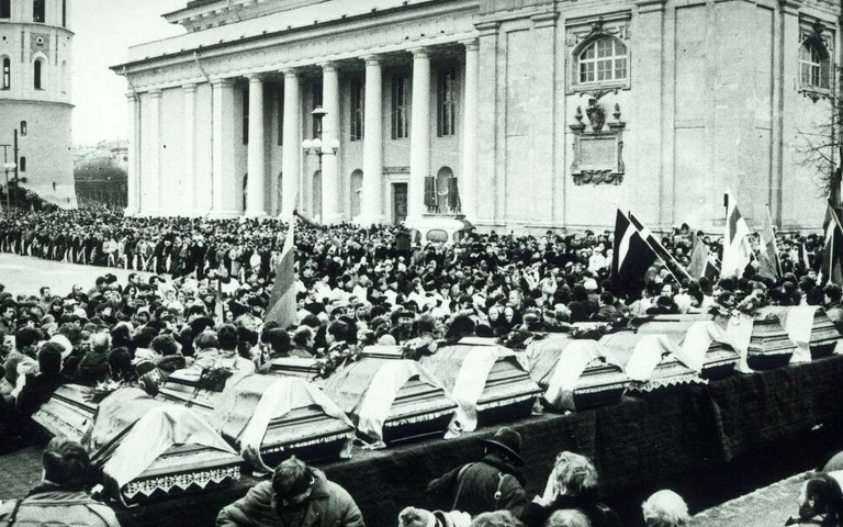 Sonntag, 13. Januar 1991. Das Imperium schlägt zurück. Sowjetische Streitkräfte und Spezialeinheiten verletzen mehr als 1.000 unbewaffnete Zivilisten. Am Fernsehturm von Vilnius werden 14 Menschen getötet, meist Jugendliche. Eine Pietà auf dem Friedhof erinnert heute an sie. Der Schock schweißt Litauen zusammen. Landsbergis erinnert sich: