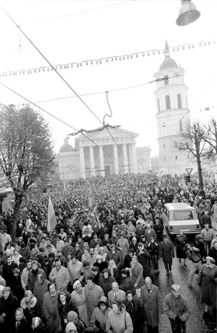 Heute erinnert vor dem litauischen Parlament ein Pavillon mit Gedenktafeln und Barrikadenresten an die Opfer des Freiheitskampfes. Eindrucksvoll ist ein hölzerner Bildstock mit einer schlichten Rosa Mystica. Er vergegenwärtigt die Rosenkranzbeter, die am Parlament den Sowjetpanzern diese Marienstatuette entgegenhielten. Trotz Schießbefehls überlebten sie alle.