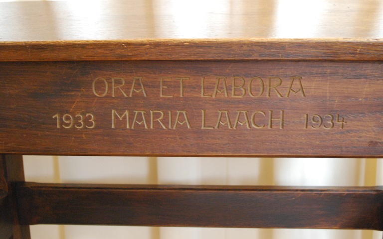 Als ihn Rudolf Augstein im Oktober 1948 mit journalistischem Instinkt „als kommenden Mann“ besuchte, ließ er die Spiegel-Leser wissen: „Ein Gebetsstuhl trägt die Aufschrift ‘Maria Laach 1933–34’.“ Wo er denn gestanden habe, wurde Adenauers jüngster Sohn gefragt. „In einer Ecke des Arbeitszimmers vor einem Kreuz. Wenn ich hereinkam und meinen Vater dort beten sah, kehrte ich um und schloss leise die Tür.“ Heute steht dieser Gebetsstuhl in der Ausstellung des Adenauerhauses.