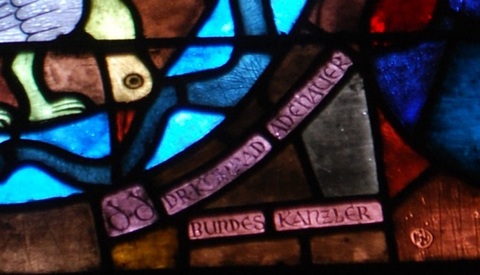 Als Bundeskanzler stiftete Adenauer ein Bleiglasfenster für den Westchor der Abteikirche, auf dem man seinen Namen lesen kann. Es zeigt Johannes den Täufer, der auf das Lamm Gottes weist, das hinwegnimmt die Sünden der Welt – „Ecce Agnus Dei, ecce qui tollit peccata mundi“ – mit den Aposteln Andreas und Johannes.