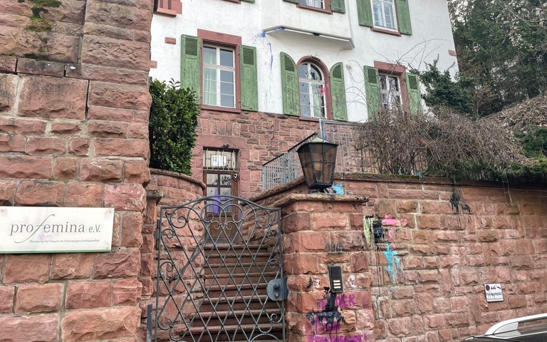 Plötzlich blitzen hinter dem schmiedeeisernen Gittertor zwei Augen hell auf. Schemenhaft huschen Maskierte durchs Bild. Mehrere dumpfe Knalllaute sind zu hören. Farbtropfen und -spritzer tänzeln durchs Bild. Es war ein Farbanschlag auf die Heidelberger Beratungsstelle von Profemina, einer Hilfsorganisation für Schwangere in Konfliktsituationen. Es war nicht der erste Anschlag, aber der bisher größte. Und die Täter, wie die Videoaufzeichnung vermuten lässt, wahrscheinlich weiblich, beließen es diesmal nicht nur bei Farbbeuteln, Schmierereien und Parolen („Nieder mit dem Patriarchat“). Sie steckten Zettel in die Briefkästen der Nachbarhäuser, mit denen sie die Anwohner gegen Profemina aufhetzen wollen.