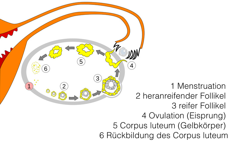 Im Zyklus der Frau beginnt nach dem Eisprung die sogenannte Lutealphase, sofern keine Befruchtung der Eizelle erfolgt. Diese Phase dauert ungefähr 14 Tage und endet unmittelbar vor der nächsten Menstruation. In der Lutealphase schließt sich der Follikel, das Bläschen, das die Eizelle nach dem Eisprung freigegeben hat, wieder und bildet den sogenannten Gelbkörper, der zunehmend mehr Progesteron erzeugt.