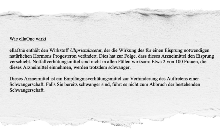 „Die Patienteninformation von ellaOne® sollte in verständlicher Weise über die pharmakologische Wirkweise und deren mögliche frühabtreibenden Konsequenzen aufklären. Transparenz über Wirkmechanismen ist keine ideologische Frage, sondern eine Voraussetzung für medizinische Redlichkeit und selbstbestimmte Entscheidungen.“