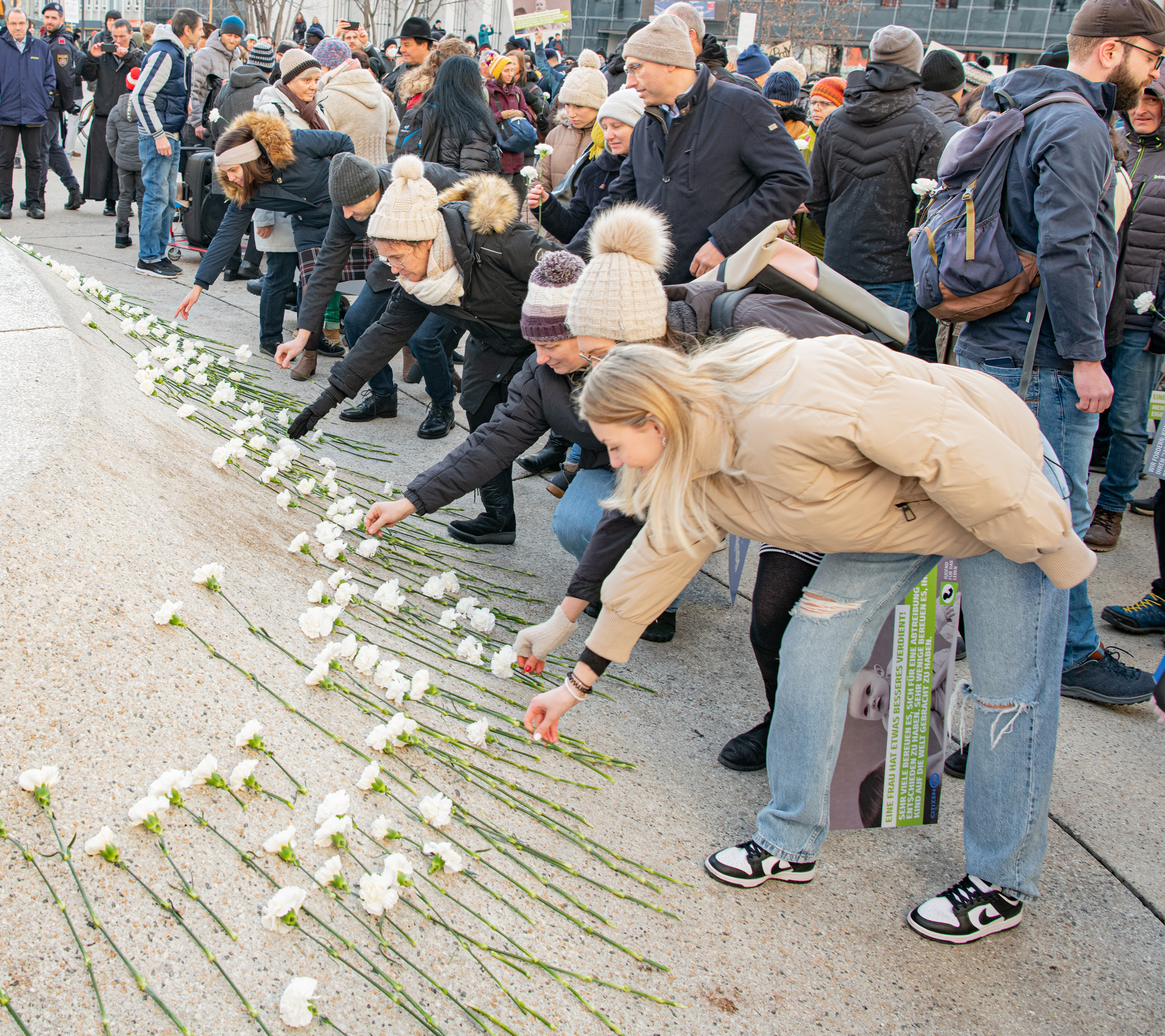 Zum Schluss der Veranstaltung werden Blumen im Gedenken an die Ungeborenen niedergelegt.