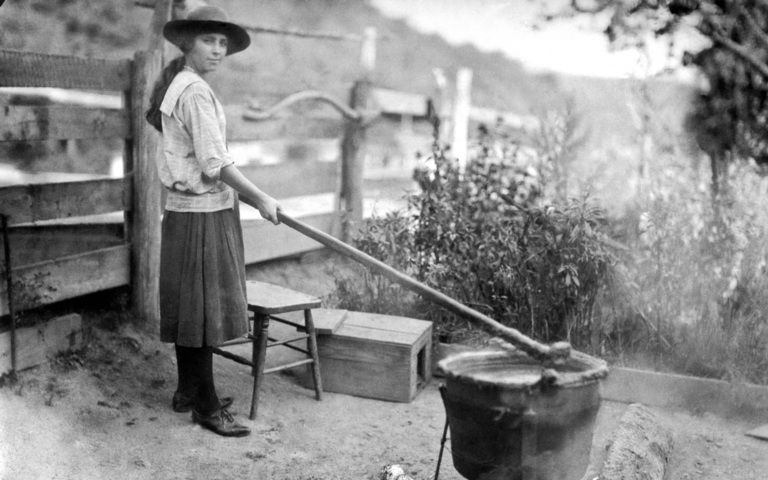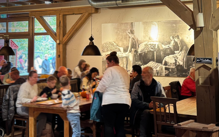 Was fällt auf? Es sind dieselben Klamotten, die man auch zum Einkaufen, zum Rasenmähen oder zum Seriengucken trägt. Und während ich meine Kürbissuppe aß und auf eine Schwarz-Weiß-Fotografie schaute, stellte ich mir vor, wie es wohl früher gewesen sein muss – als selbst Arbeitskleidung so entworfen war, dass sie heute fast schon für den Theaterbesuch durchginge.
